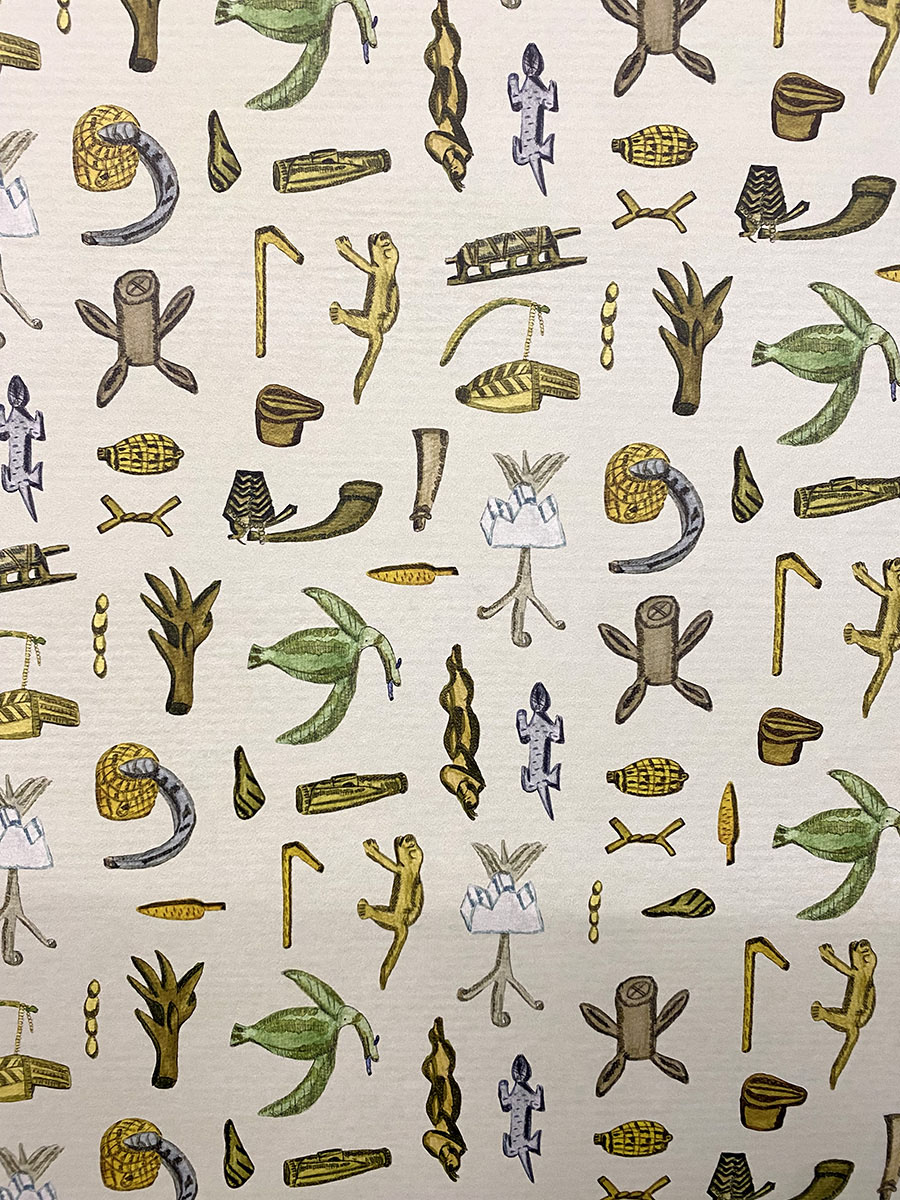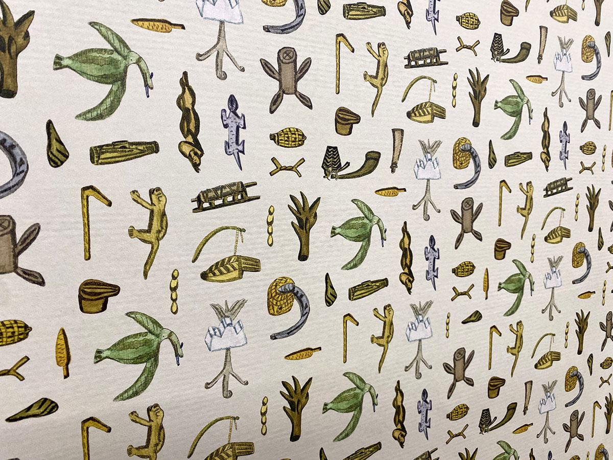 tences or stories, setting the grid to select their symbolic value and contextualize each message. Anthropomorphic and zoomorphic motifs are very common, but also houses, spells, domestic and personal objects, as well as many of the region’s plants.