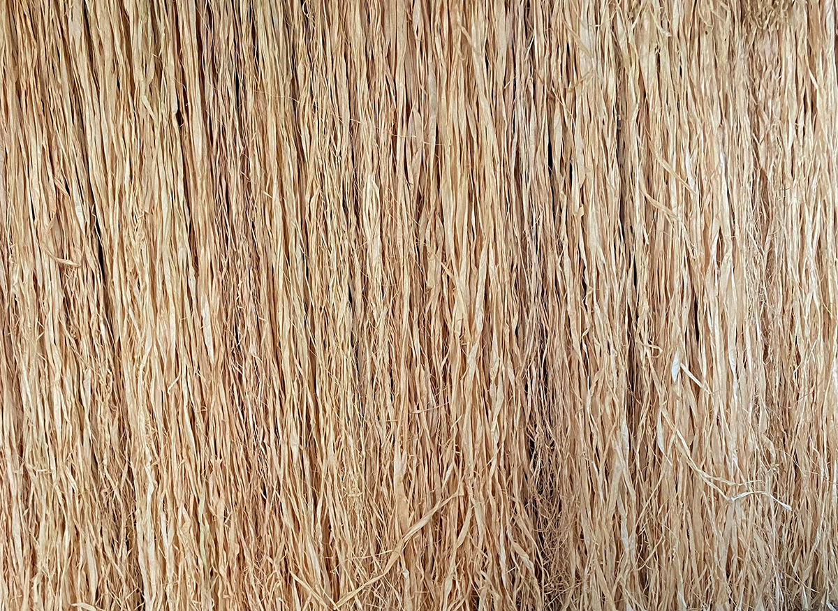 hood, playing endless hours in the hay loft. As soon as the wind blows the whole installation merges somewhat in a single dancing raffia skirt.